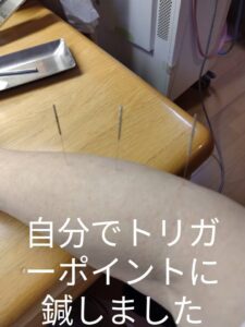 トリガーポイントには、鍼の刺激が非常に効果的でありますので、ここは鍼灸師の特権?で自分で鍼をしてみました。