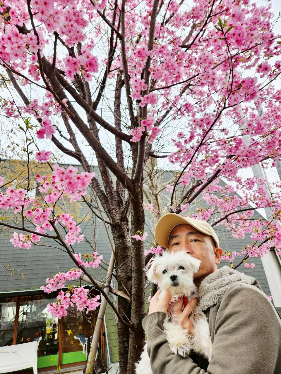 安田ヨーグルトの敷地内に、ピンク色の鮮やかな桜が咲いていました。